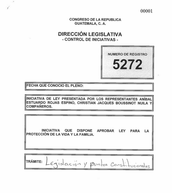 En la exposición de motivos del documento, cuyo texto inicial fue publicado en la web del Parlamento, se señala que "históricamente, el Estado de Guatemala ha sido respetuoso del derecho a la vida desde el momento mismo de la concepción" y "ha reconocido también que la familia es la institución única que brinda al ser humano una expectativa real de desarrollo pleno".